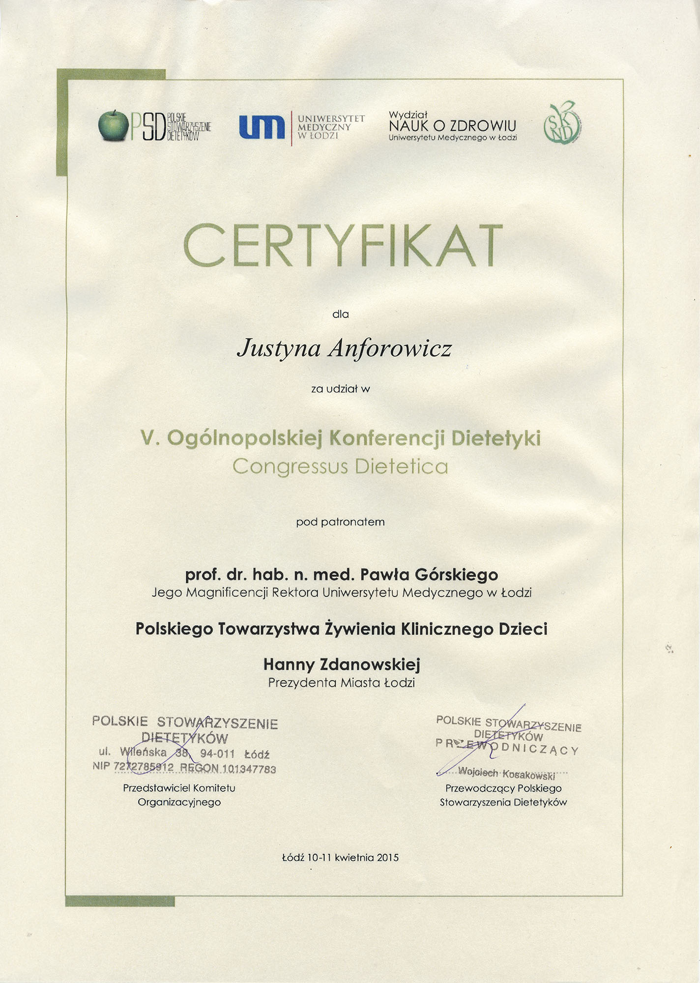 Nazywam się Justyna Anforowicz i jestem magistrem dietetyki.